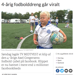 Mon ikke der dukker et genkendelsens grin op ved mindet, for mange mennesker i Danmark og i hele den virale verden husker ham og hans jubelscene fra i sommer. Fire-årige Axel Gregersen fra Aalborg Freja var med familien til Vildbjerg Cup, hvor han delto